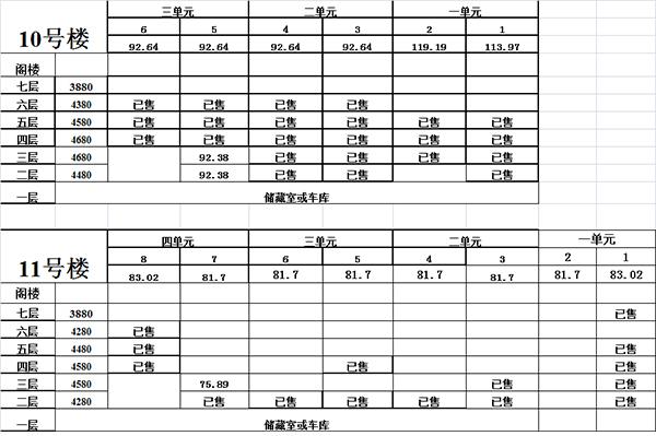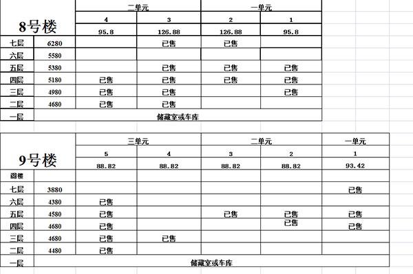 價(jià)格表